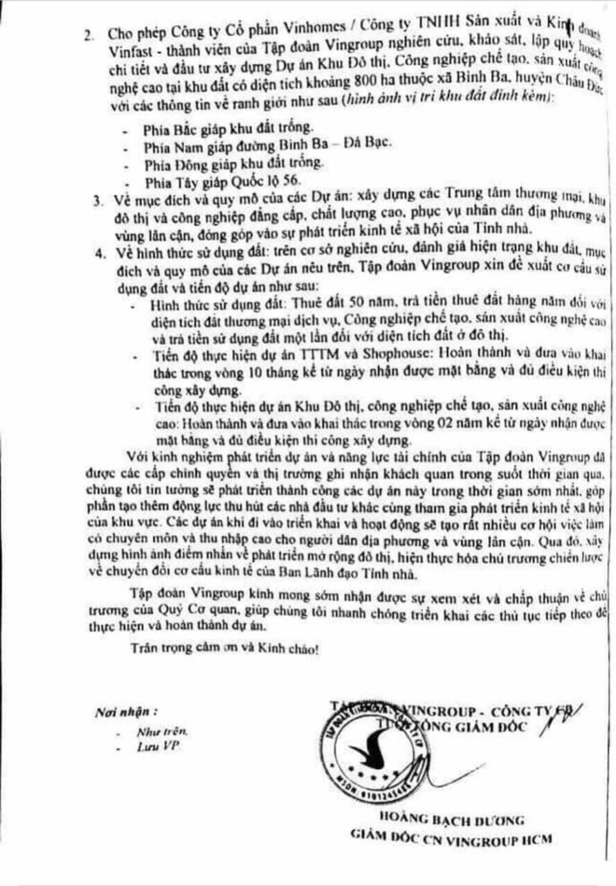 (Một số văn bản làm việc giữa Vingroup và UBND Bà Rịa Vũng Tàu được lan truyền trên mạng chưa được kiểm chứng)